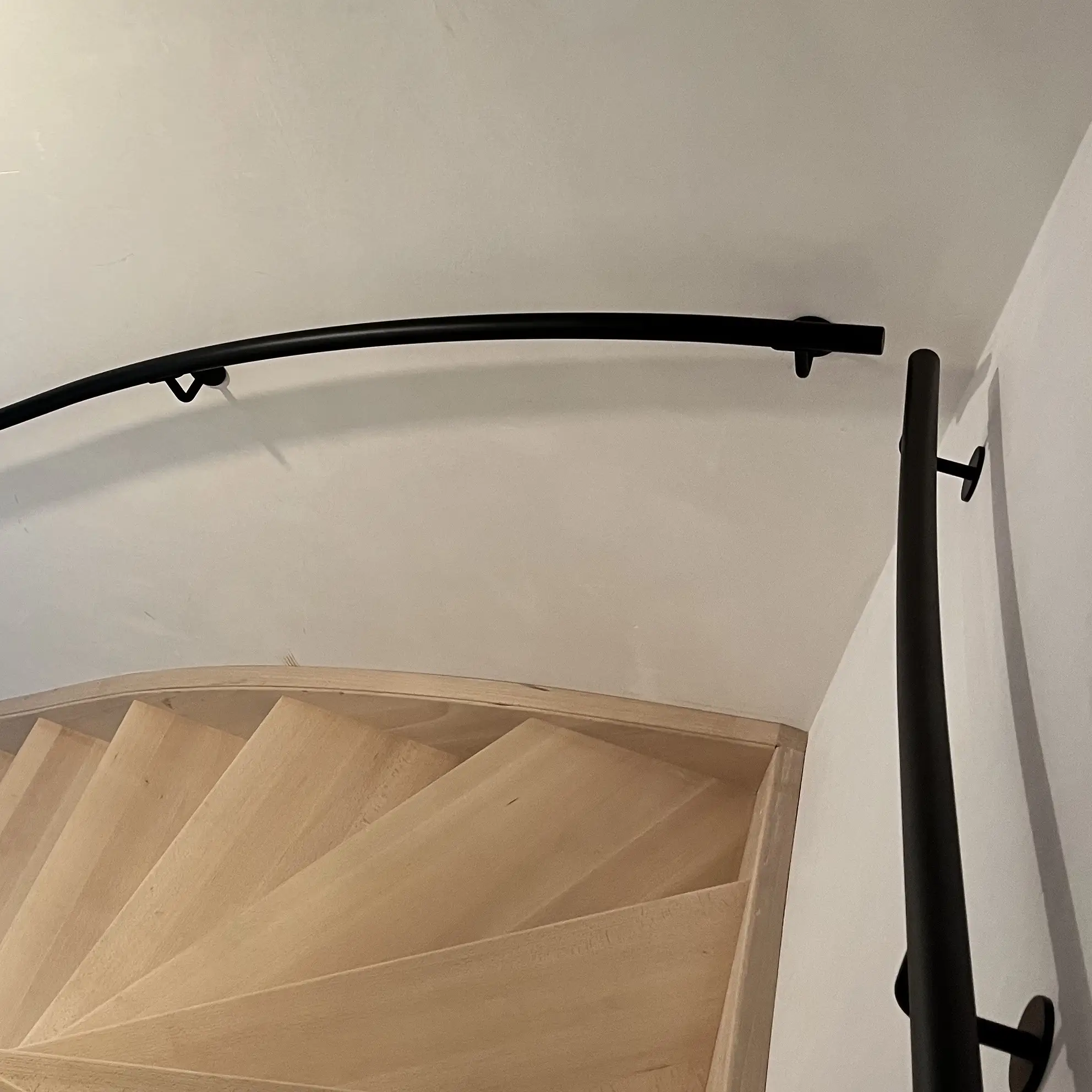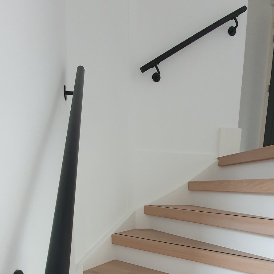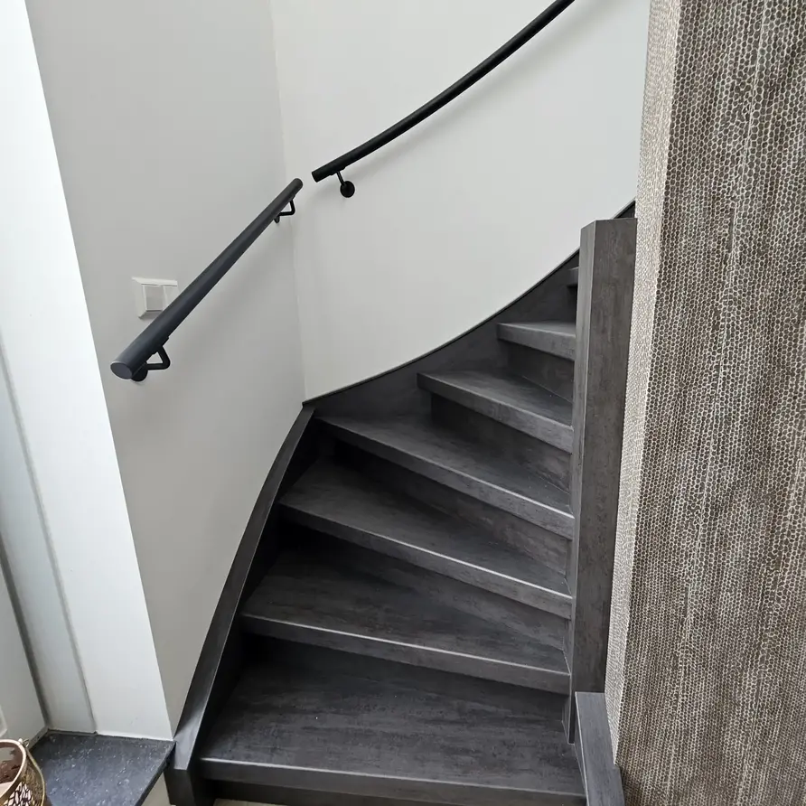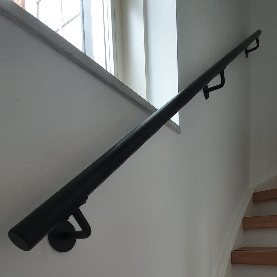Zwarte trapleuning (gecoat) op maat - rond smal - incl. leuninghouders TYPE 3 - coating zwart RAL 9005