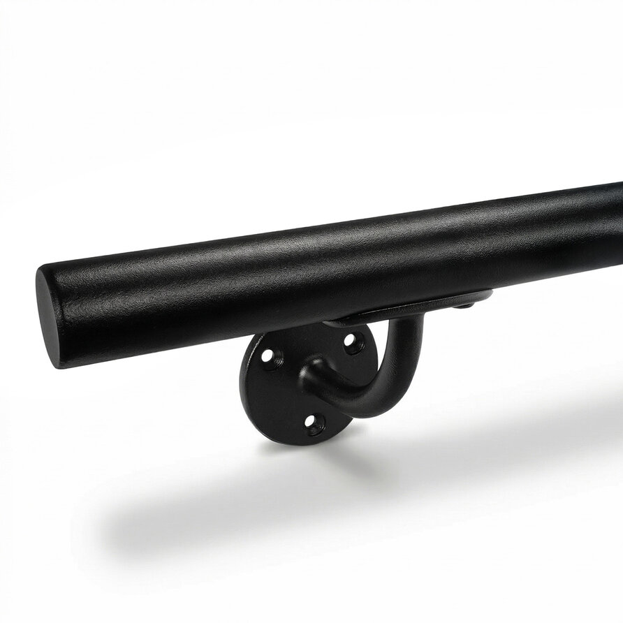 Zwarte trapleuning (gecoat) op maat - rond smal - incl. leuninghouders TYPE 2 - coating zwart RAL 9005