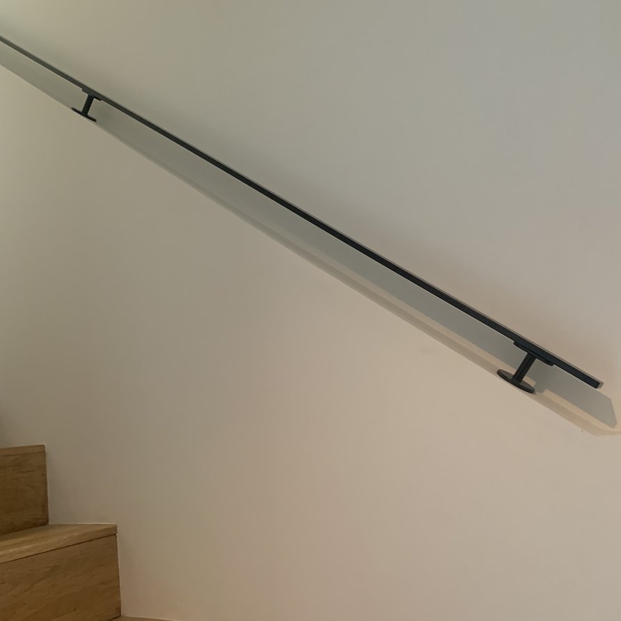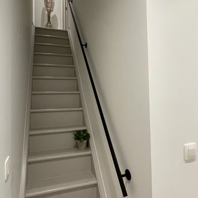 Een stijlvolle zwarte trapleuning met moderne type 5 leuningdragers. Deze rechthoekige leuning past mooi in een moderne & trendy interieurstijl en wordt - in een lengte op maat - compleet incl. dragers + bevestigingsmaterialen geleverd. Lees meer