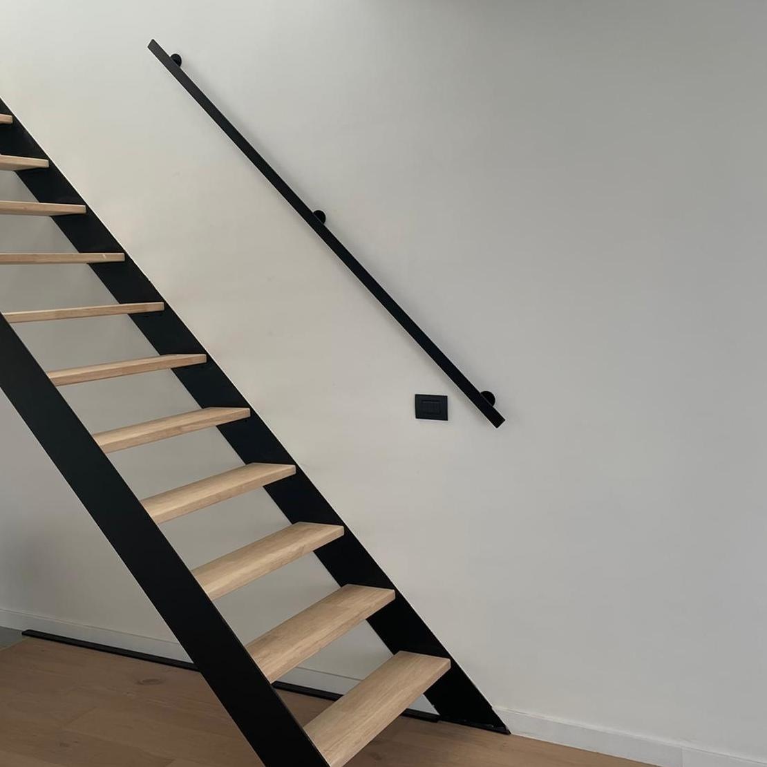 Zwarte trapleuning (gecoat) op maat - rechthoekig (40x10 mm) - incl. leuninghouders TYPE 5 - coating zwart RAL 9005