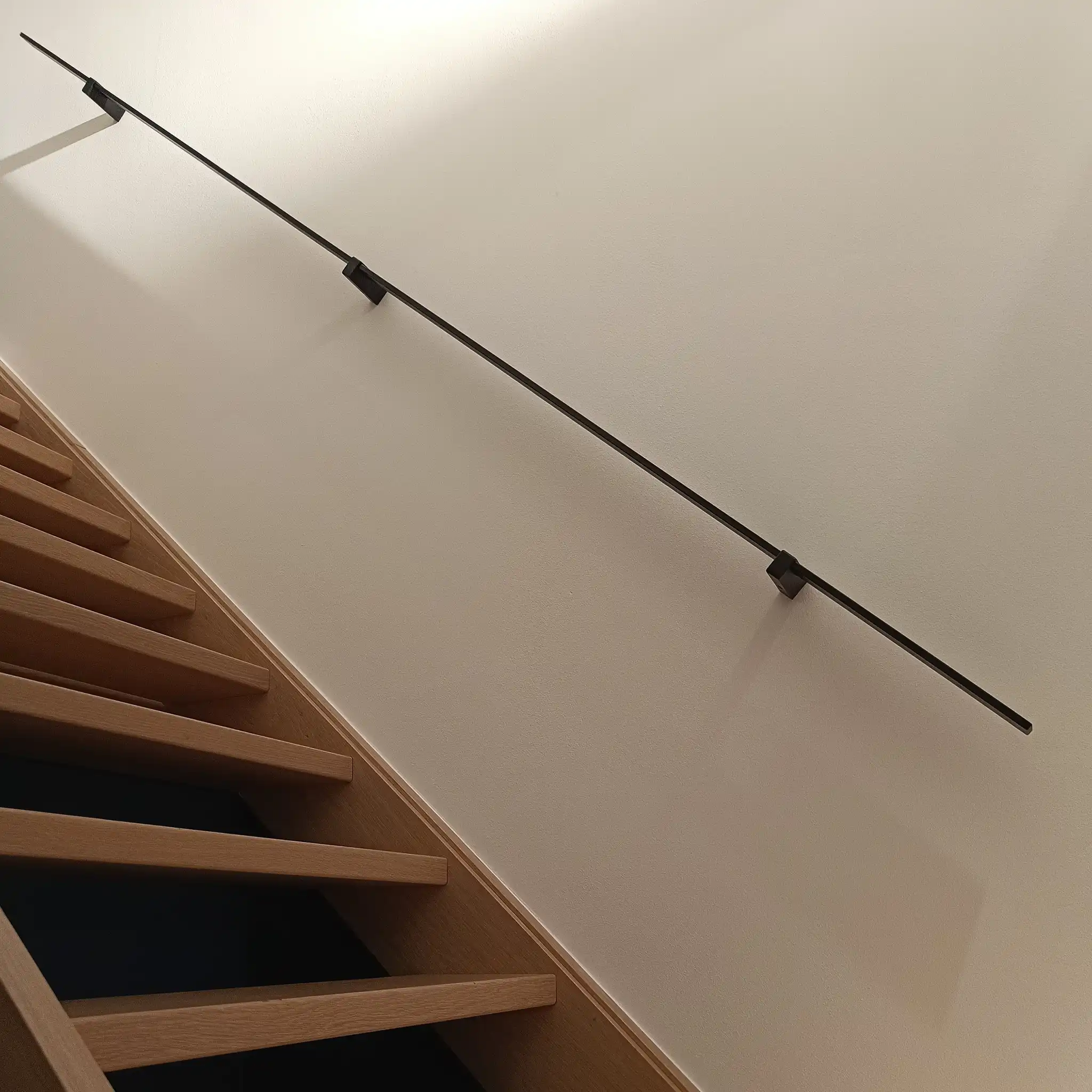 Een stijlvolle zwarte trapleuning met strakke type 13 leuningdragers. Deze rechthoekige leuning past mooi in een moderne & trendy interieurstijl en wordt - in een lengte op maat - compleet incl. dragers + bevestigingsmaterialen geleverd. Lees meer