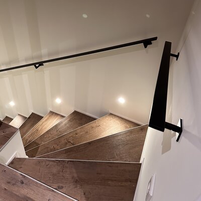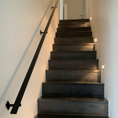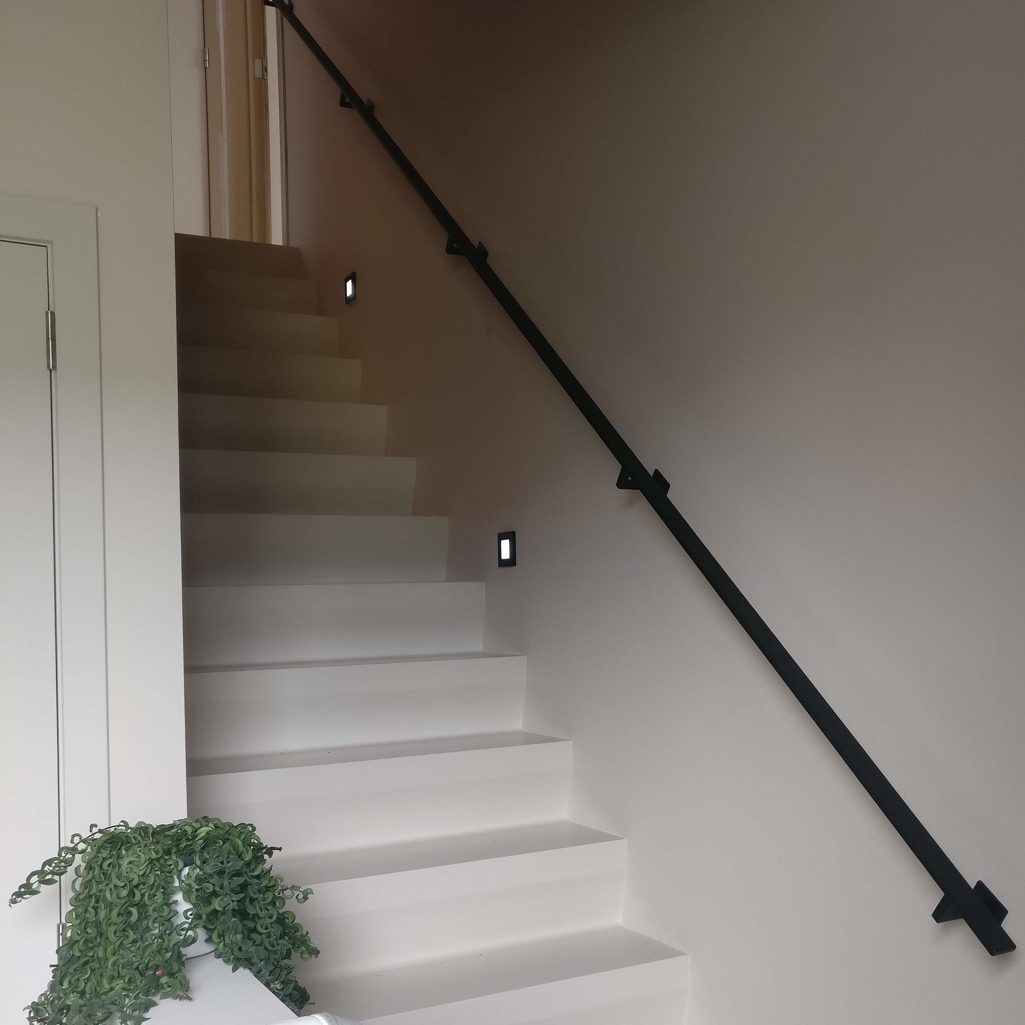 Zwarte trapleuning (gecoat) op maat - rechthoekig (40x10 mm) - incl. leuninghouders TYPE 11 - coating zwart RAL 9005