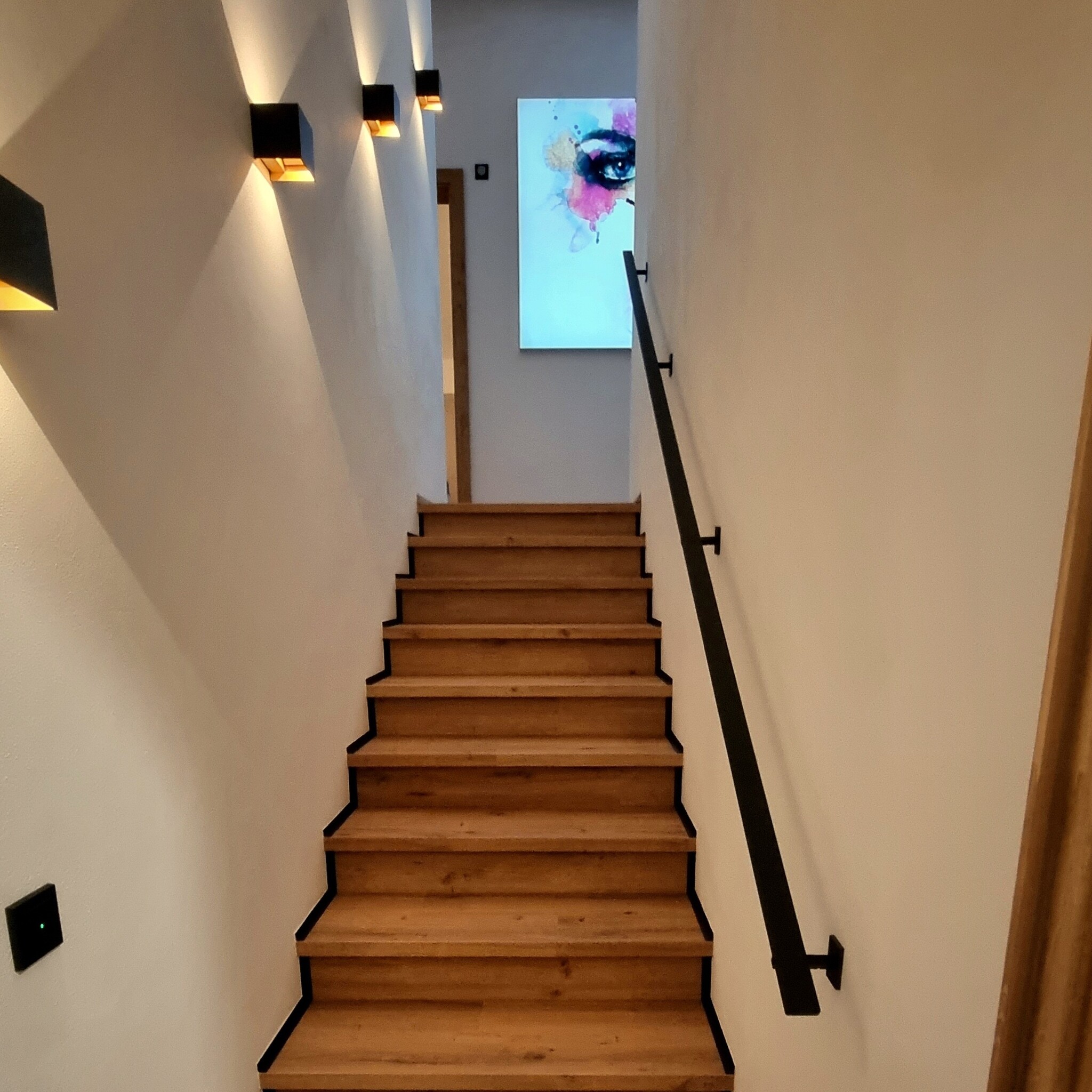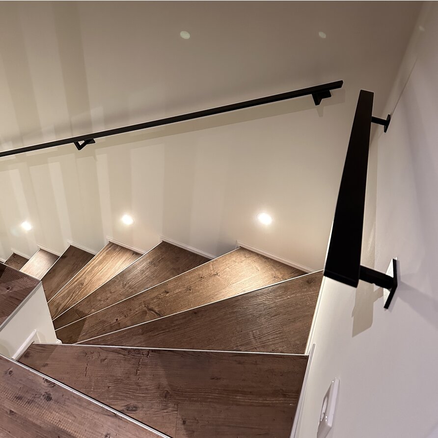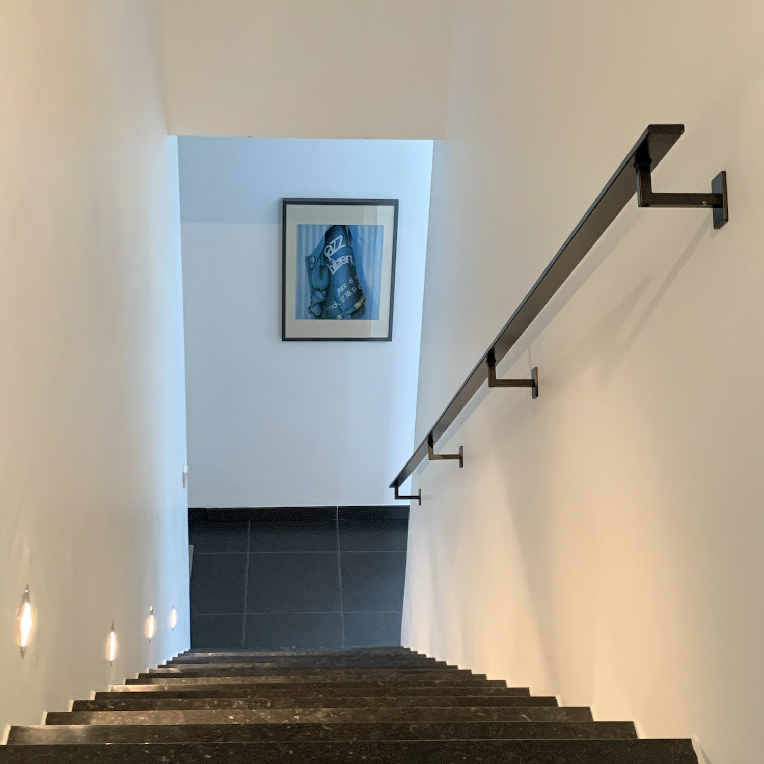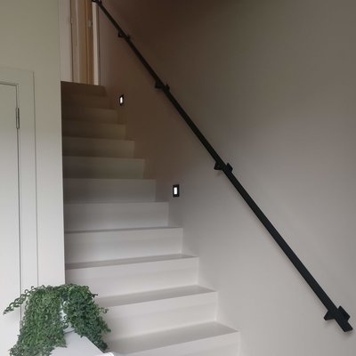 Een stijlvolle zwarte trapleuning met stijlvolle type 11 leuningdragers. Deze rechthoekige leuning past mooi in een moderne & trendy interieurstijl en wordt - in een lengte op maat - compleet incl. dragers + bevestigingsmaterialen geleverd. Lees meer