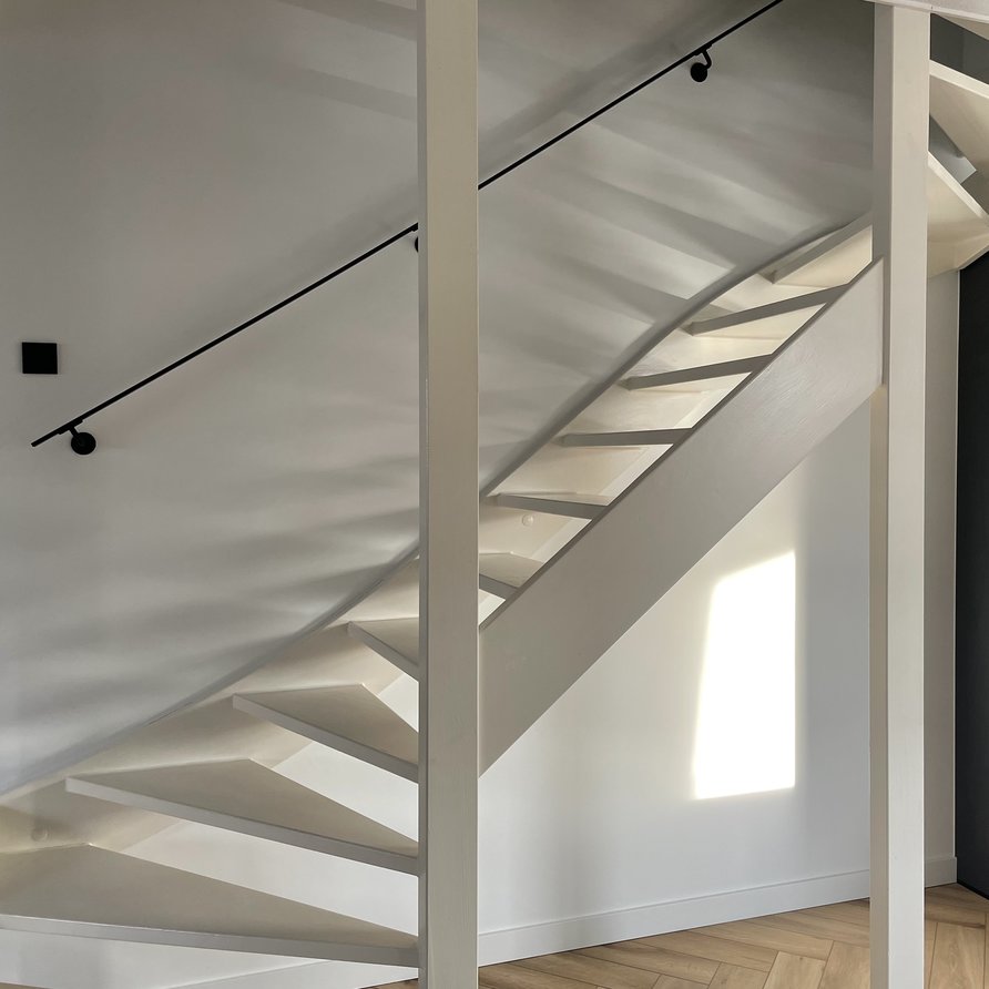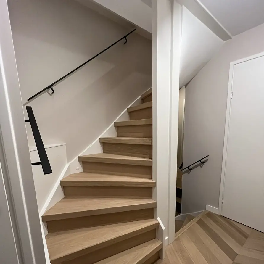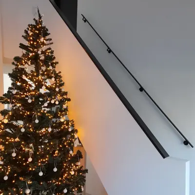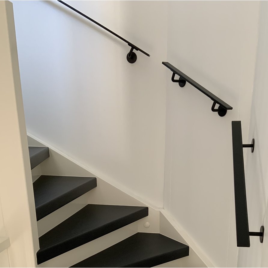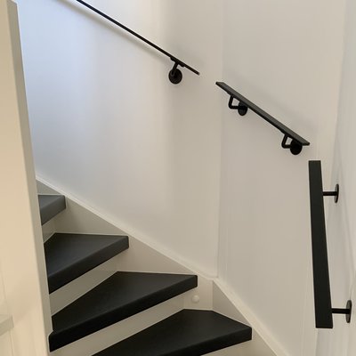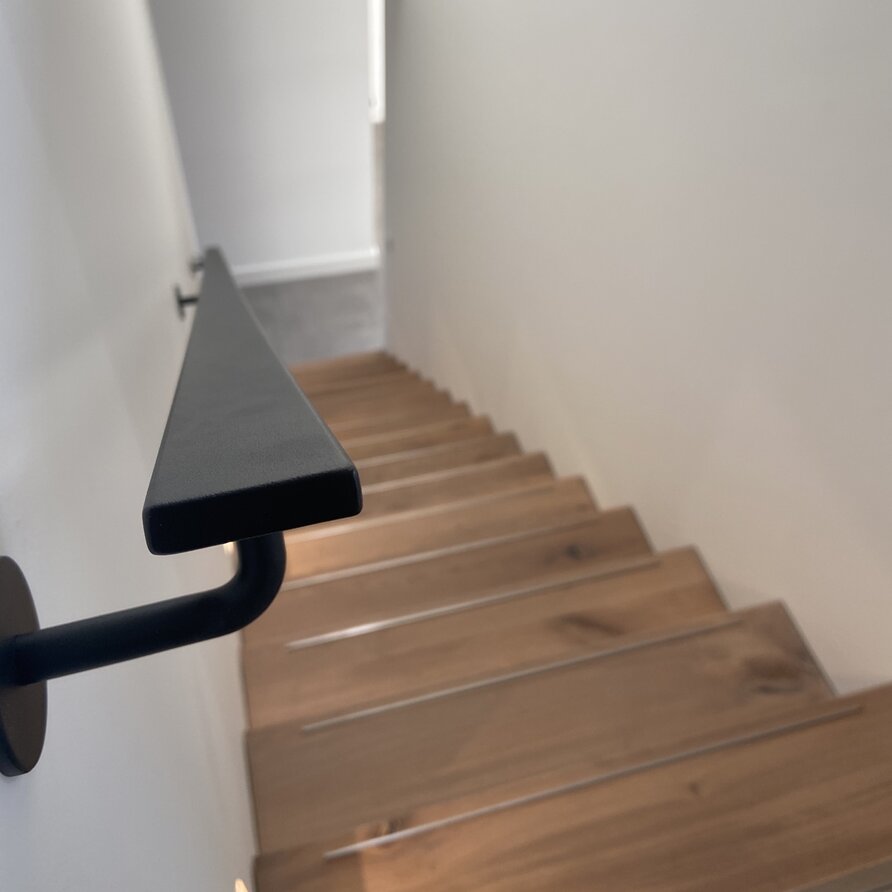 Een stijlvolle zwarte trapleuning met moderne type 3 leuningdragers. Deze rechthoekige leuning past mooi in een moderne & trendy interieurstijl en wordt - in een lengte op maat - compleet incl. dragers + bevestigingsmaterialen geleverd. Lees meer