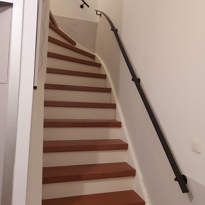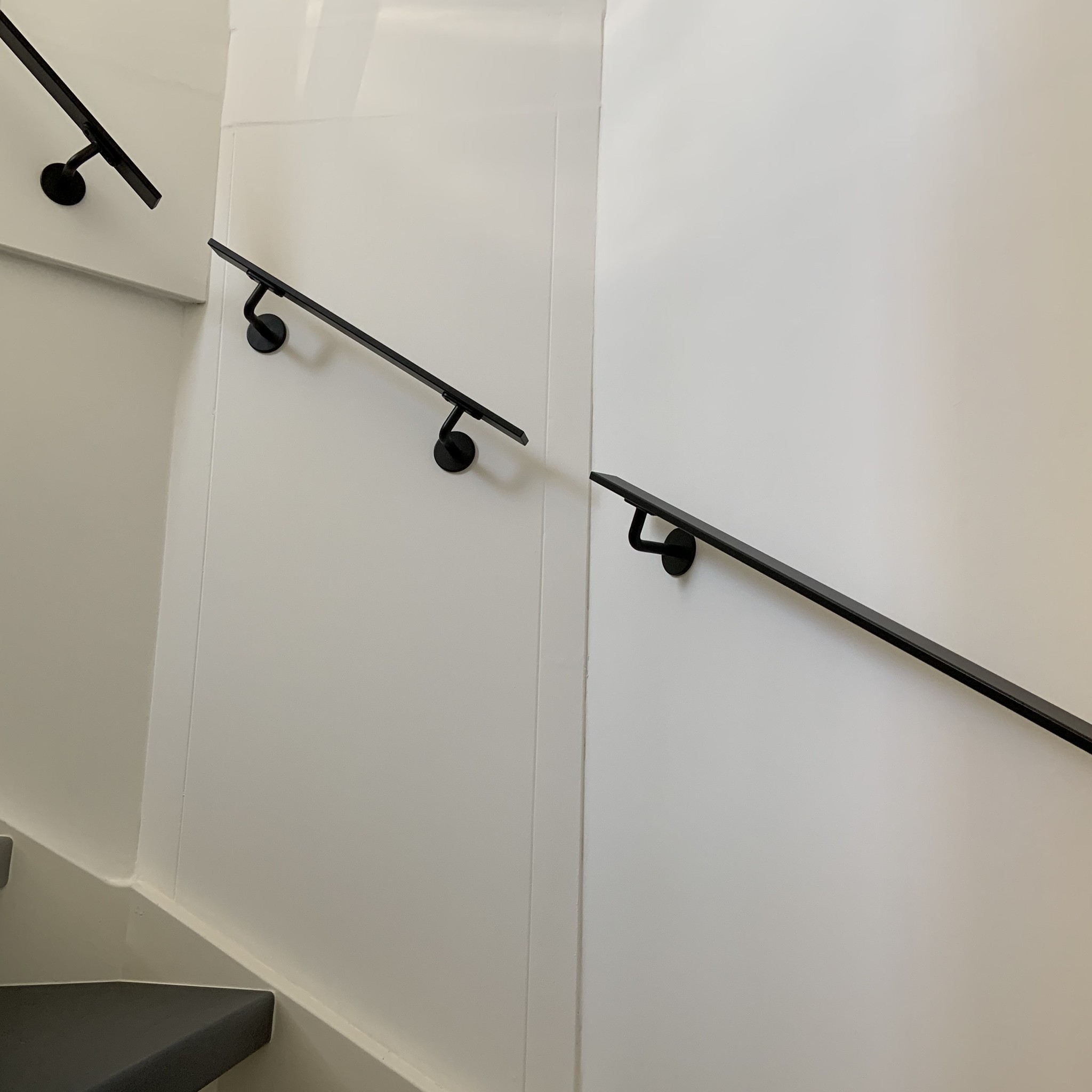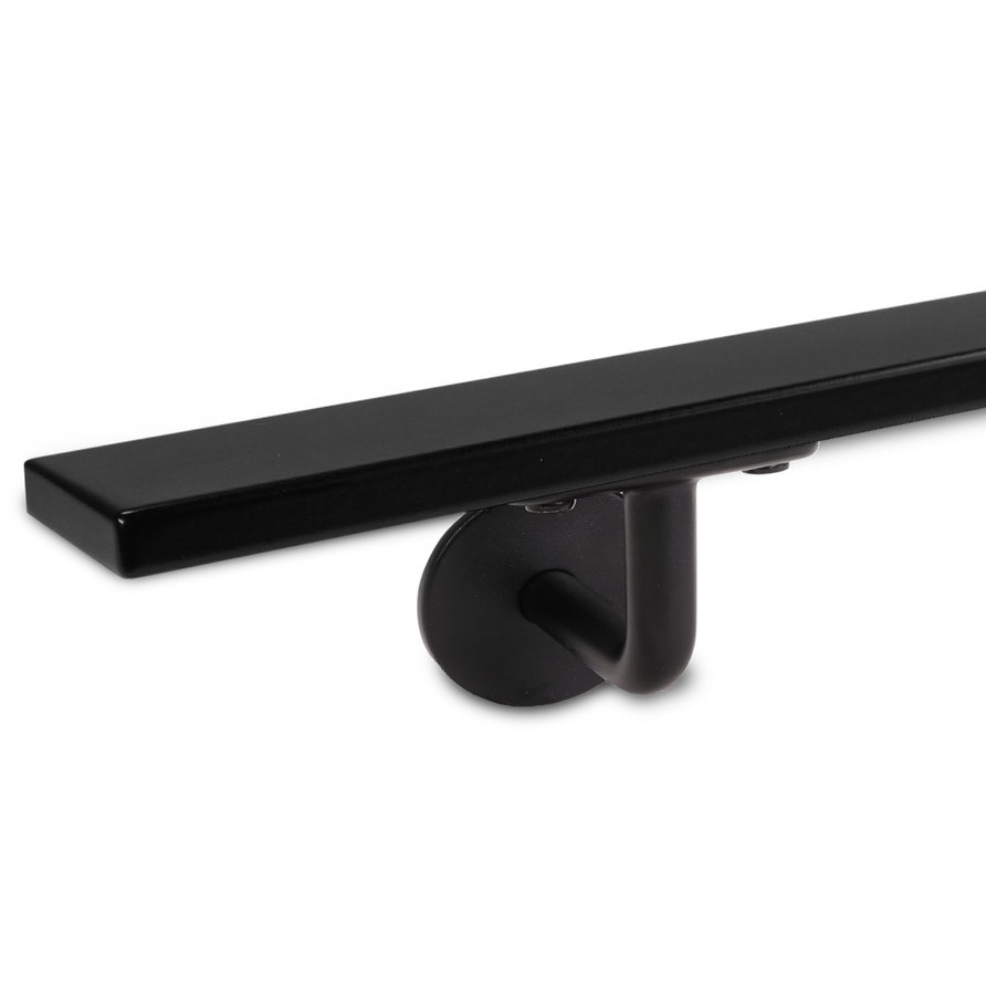 Zwarte trapleuning (gecoat) op maat - rechthoekig (40x10 mm) - incl. leuninghouders TYPE 3 - coating zwart RAL 9005