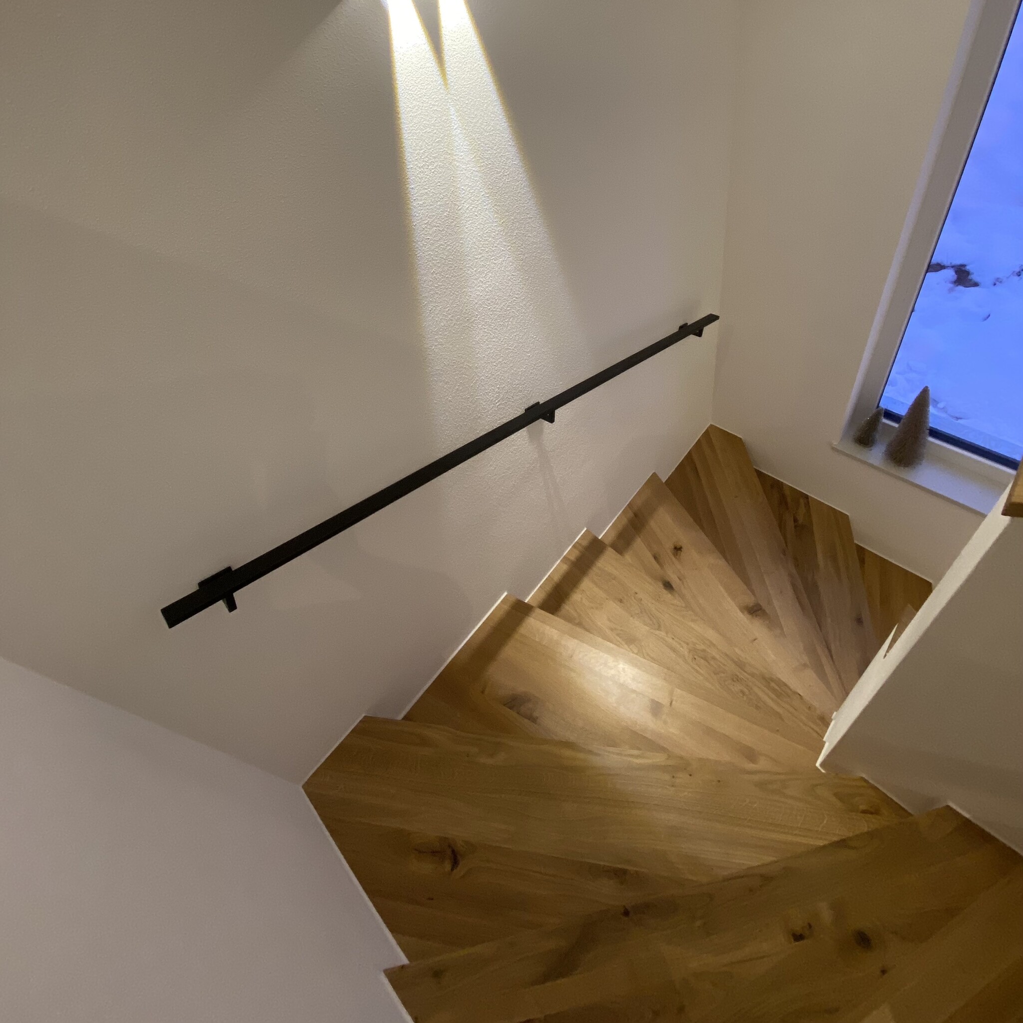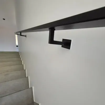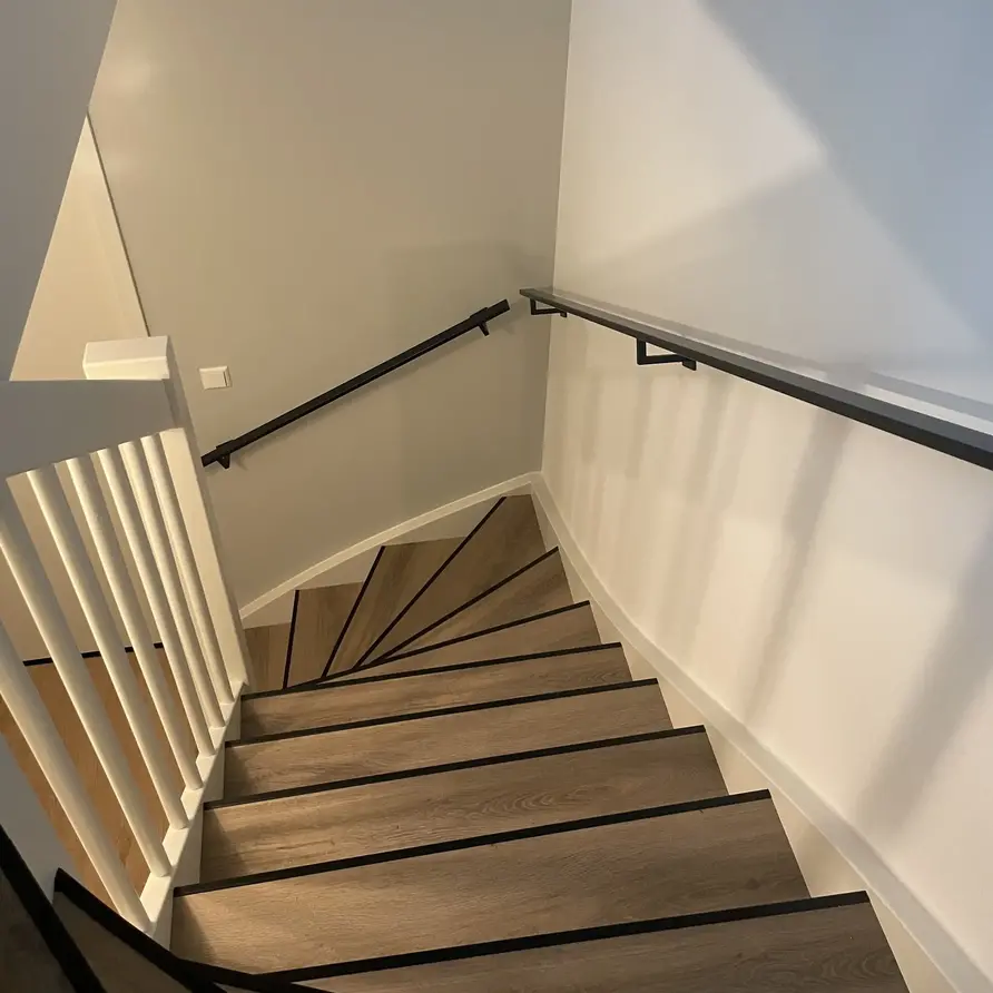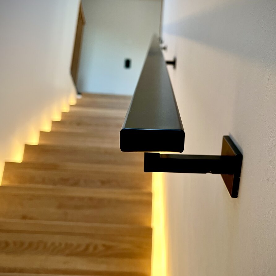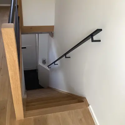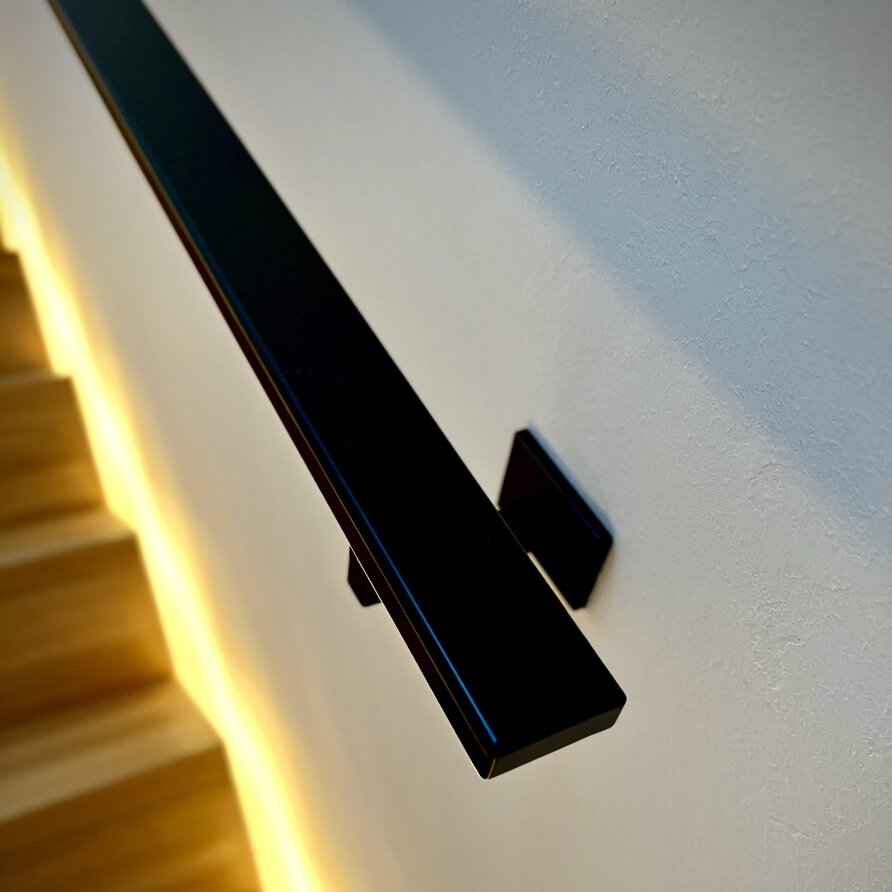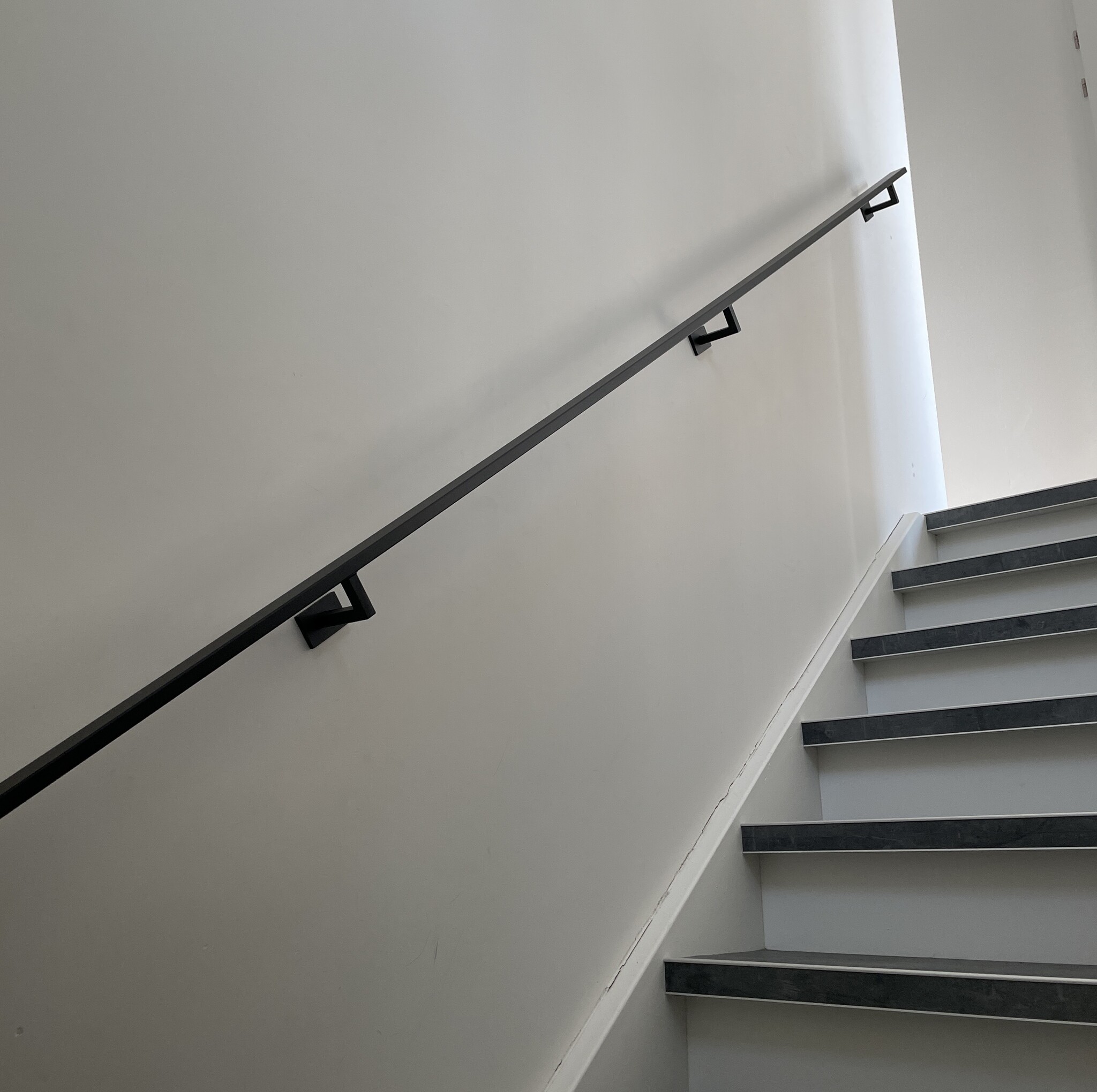 Een stijlvolle zwarte trapleuning met stijlvolle type 11 leuningdragers. Deze rechthoekige leuning past mooi in een moderne interieurstijl en wordt - in een lengte op maat - compleet incl. dragers + bevestigingsmaterialen geleverd. Lees meer