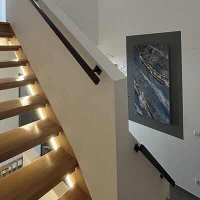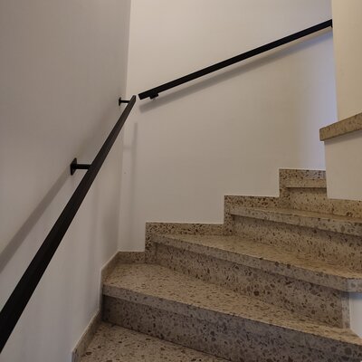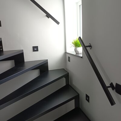 Zwarte trapleuning (gecoat) op maat - rechthoekig (40x20 mm) - incl. leuninghouders TYPE 16 - coating zwart RAL 9005