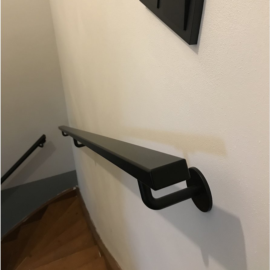 Een toegankelijke zwarte trapleuning met moderne type 3 leuningdragers. Deze rechthoekige leuning past in vrijwel iedere moderne interieurstijl en wordt - in een lengte op maat - compleet incl. dragers + bevestigingsmaterialen geleverd. Lees meer