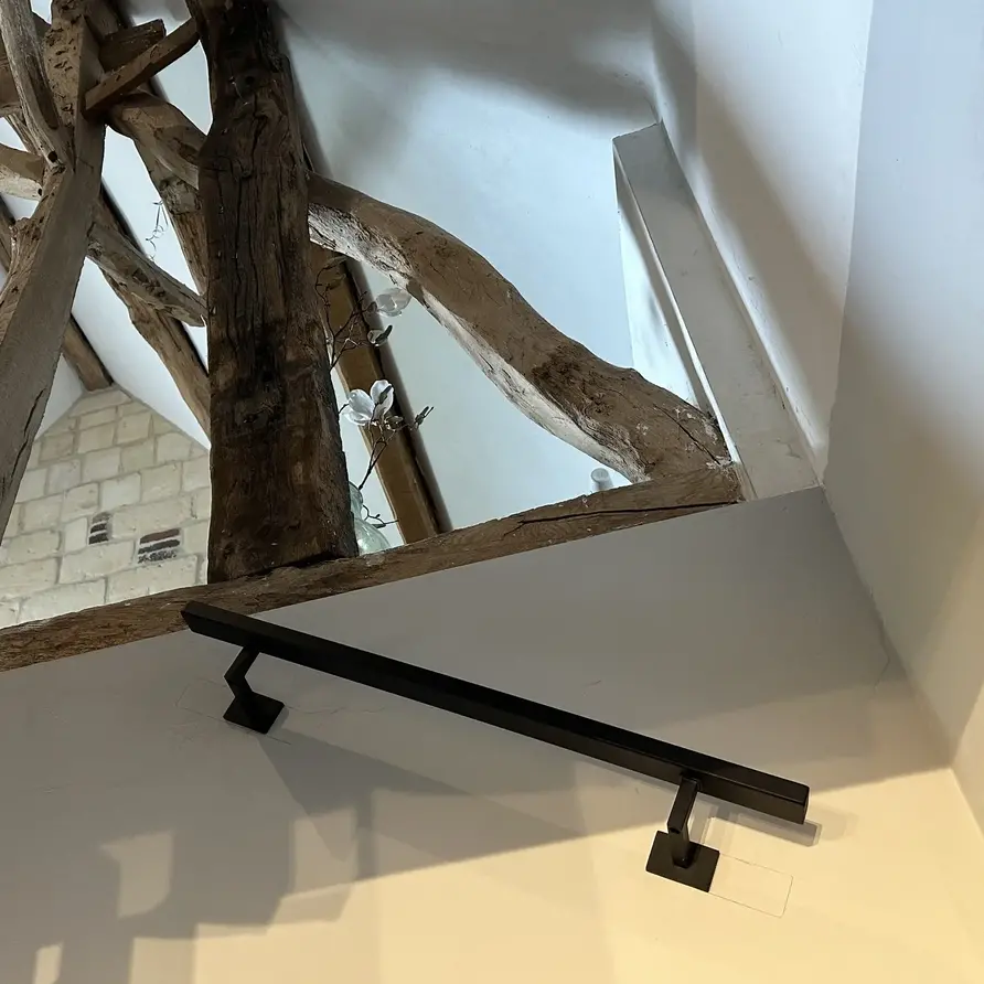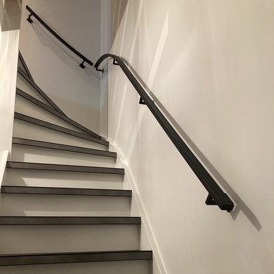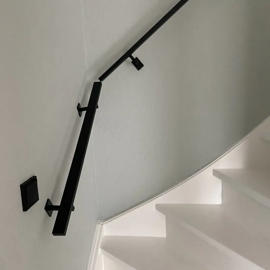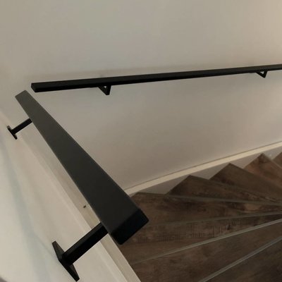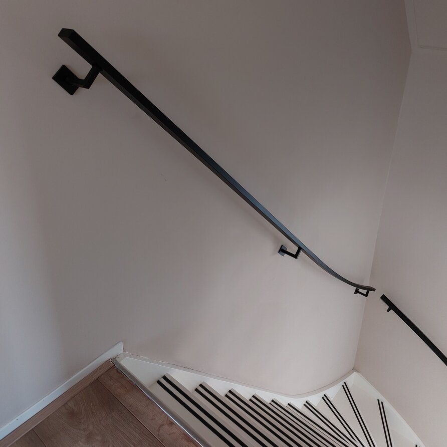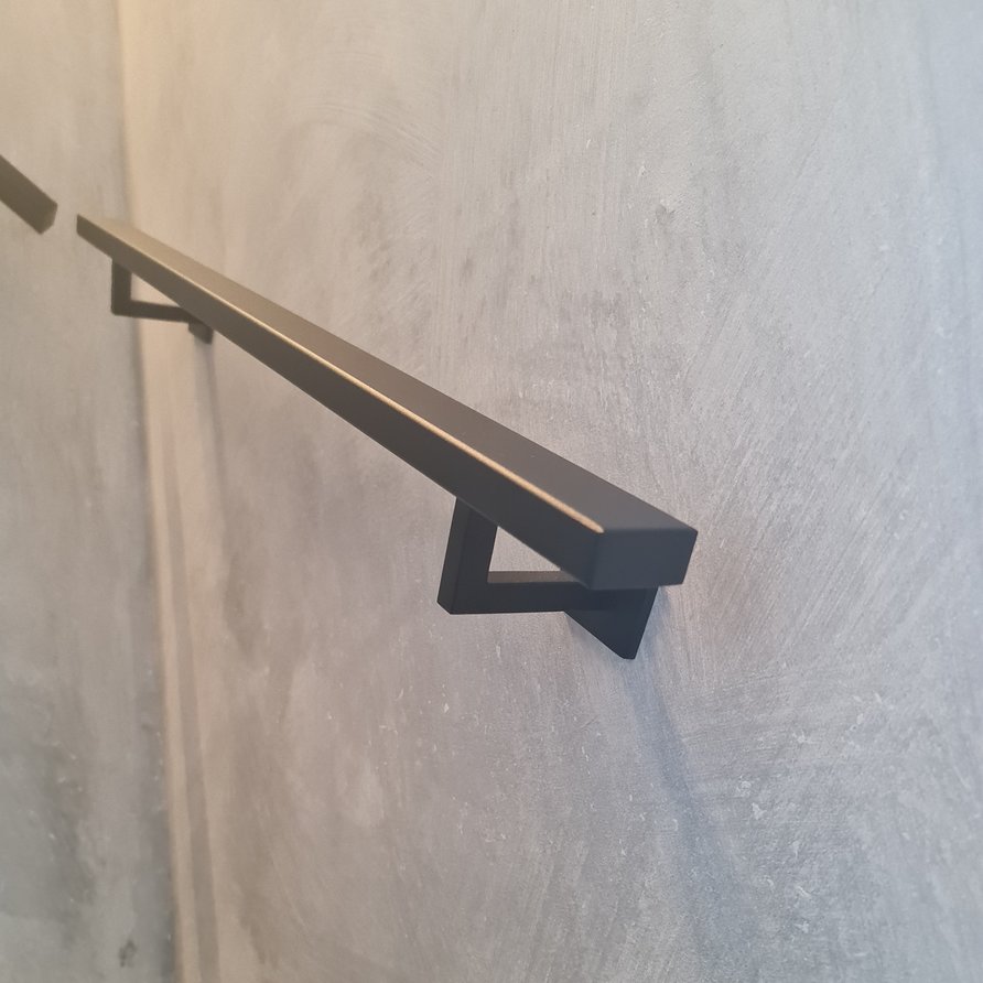 Een toegankelijke zwarte trapleuning met stijlvolle type 11 leuningdragers. Deze rechthoekige leuning past in vrijwel iedere moderne interieurstijl en wordt - in een lengte op maat - compleet incl. dragers + bevestigingsmaterialen geleverd. Lees meer