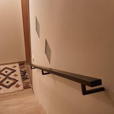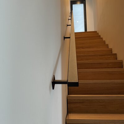 Zwarte trapleuning - rechthoekig (40x20 mm) - incl. dragers TYPE 11 + bevestigingsmaterialen - OP MAAT - van 30 cm t/m 595 cm lang - poedercoating in RAL 9005 zwart fijnstructuur of glad (voor binnen). Deze rechthoekige zwarte trapleuning van staal heeft een "dikte" van 40x20 mm en is voorzien van een hoogwaardige poedercoating in de zwarte kleurtint RAL 9005 (gitzwart). Hierbij heeft u de keuze uit een trapleuning zwart in RAL kleur 9005 met een fijnstructuur of een gladde coating. De zwarte 40x20 mm trapleuning is het beste te omschrijven als "toegankelijk modern": Net wat subtieler t.o.v. de slanke 40x10 mm en de robuuste 40x40 mm leuning.