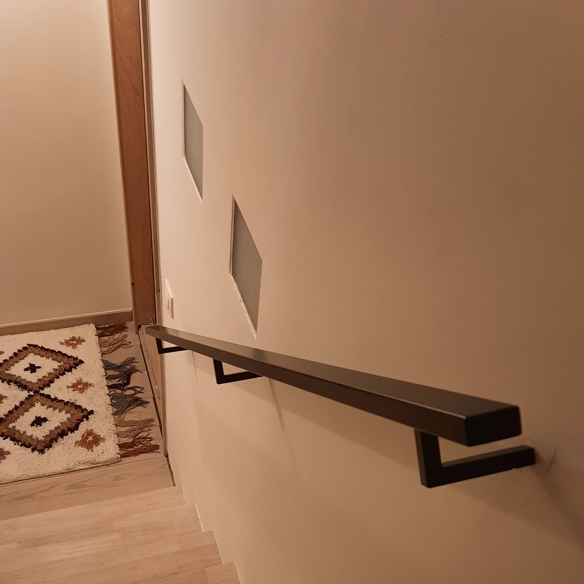 Zwarte trapleuning (gecoat) op maat - rechthoekig (40x20 mm) - incl. leuninghouders TYPE 11 - coating zwart RAL 9005