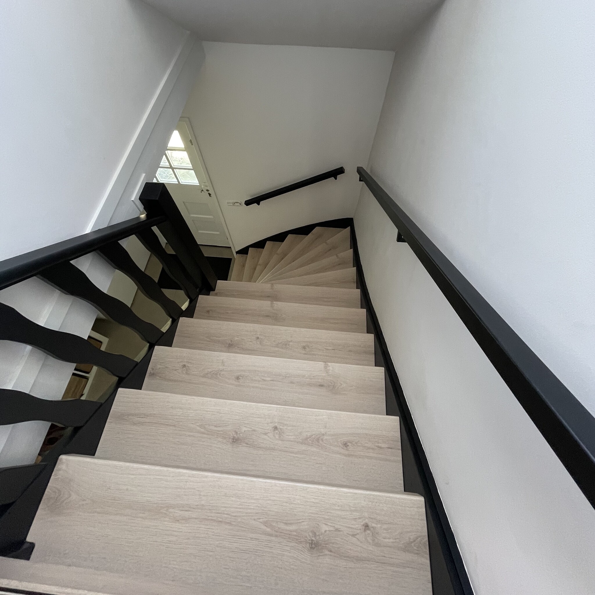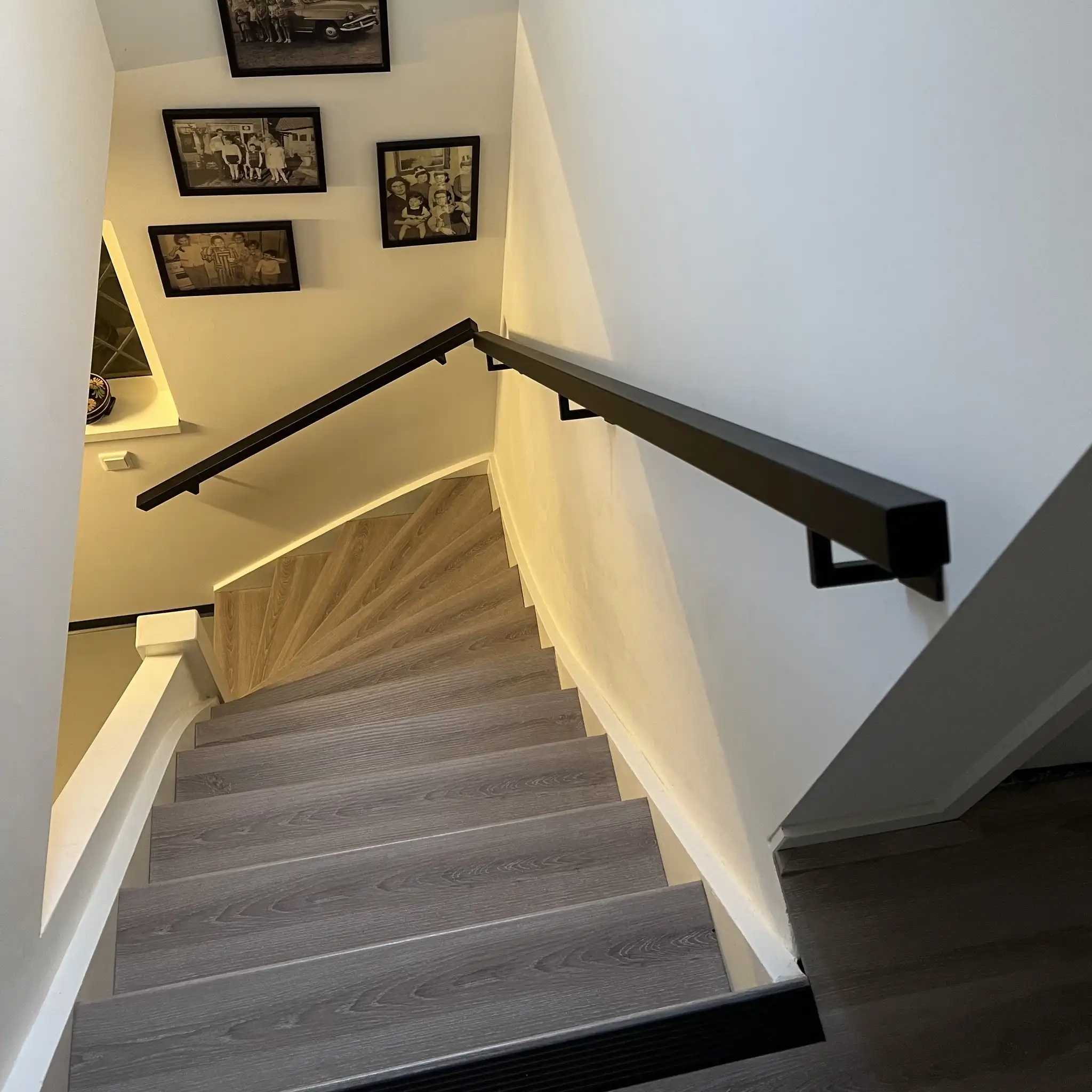 Zwarte trapleuning (gecoat) op maat - vierkant (40x40 mm) - incl. leuninghouders TYPE 11 - coating zwart RAL 9005