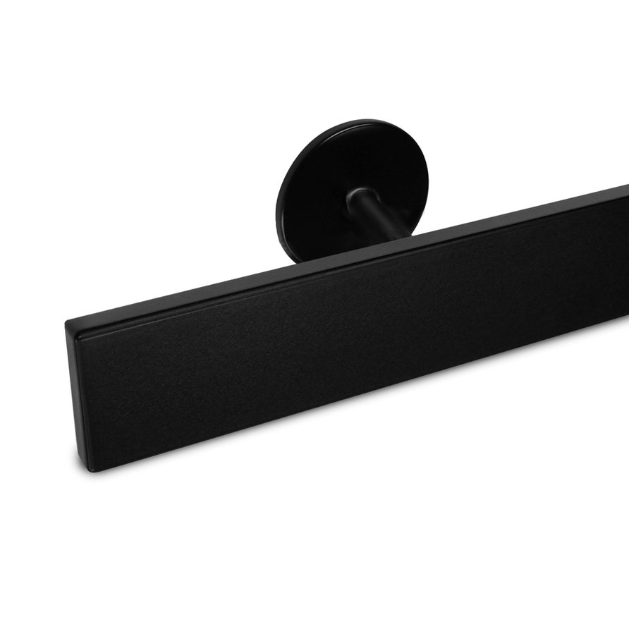 Zwarte trapleuning (gecoat) op maat - rechthoekig (50x10 mm) - incl. leuninghouders TYPE 5 - coating zwart RAL 9005