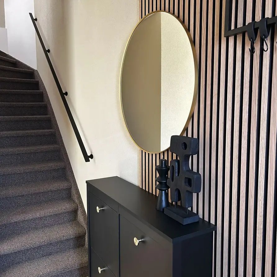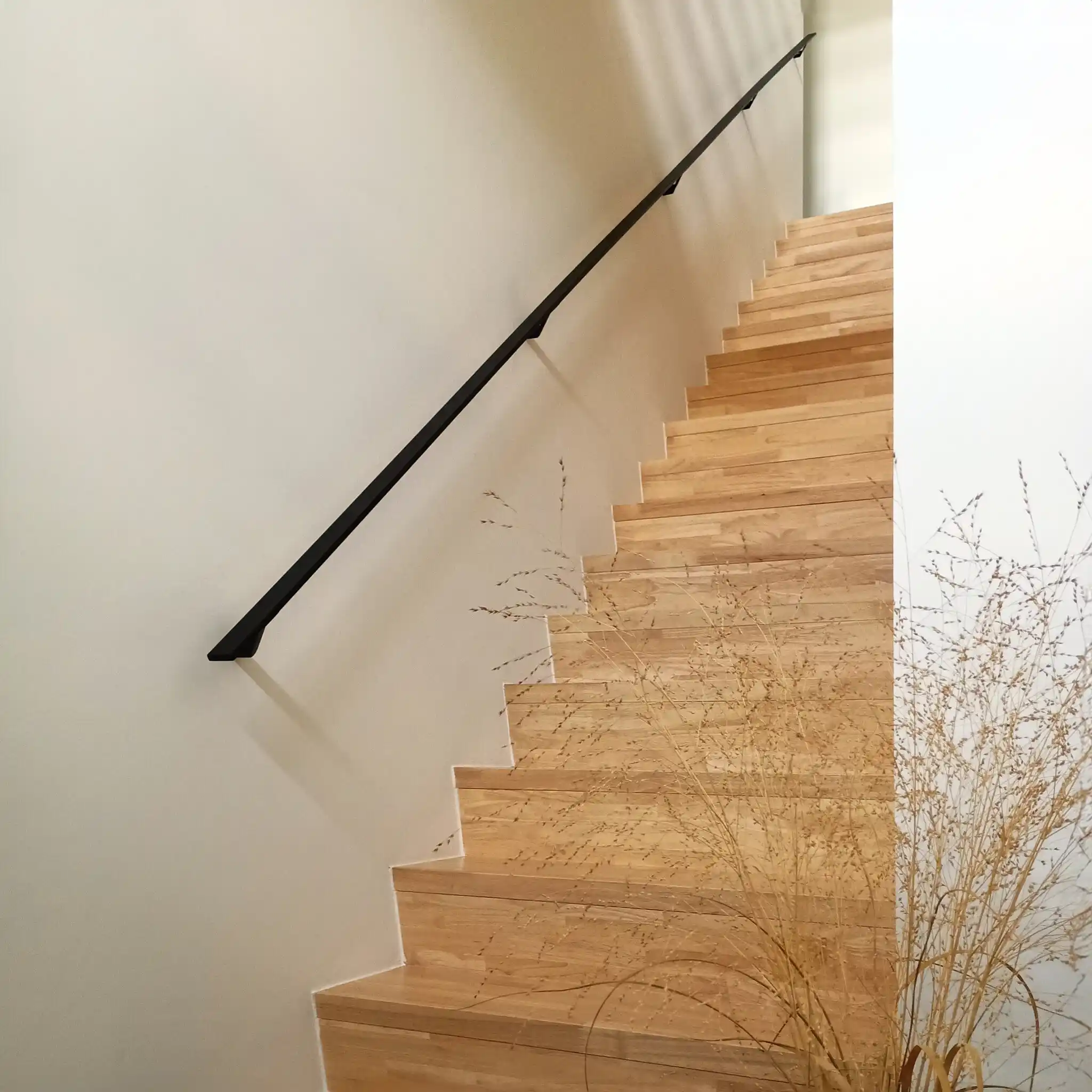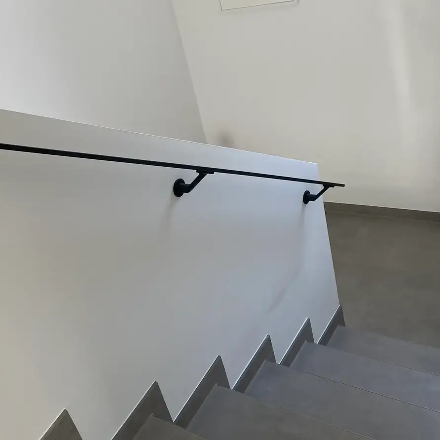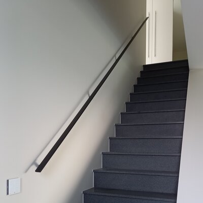 Een stijlvolle zwarte trapleuning met stijlvolle TYPE 7 LUXE leuningdragers. Deze rechthoekige leuning past mooi in een moderne & trendy interieurstijl en wordt - in een lengte op maat - compleet incl. dragers + bevestigingsmaterialen geleverd. Lees meer