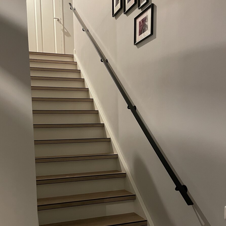 Zwarte trapleuning (gecoat) op maat - rechthoekig (40x10 mm) - incl. leuninghouders TYPE 1 - coating zwart RAL 9005