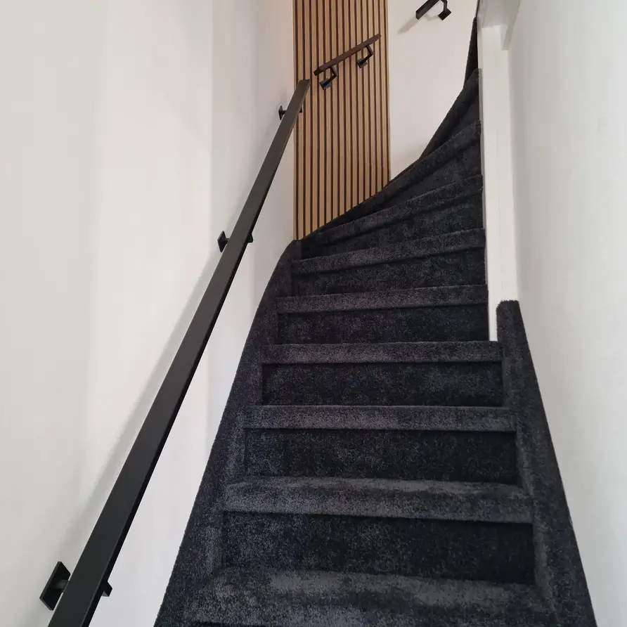 Een unieke zwarte trapleuning met stijlvolle type 11 leuningdragers. Deze rechthoekige leuning past in vrijwel iedere moderne interieurstijl en wordt - in een lengte op maat - compleet incl. dragers + bevestigingsmaterialen geleverd. Lees meer