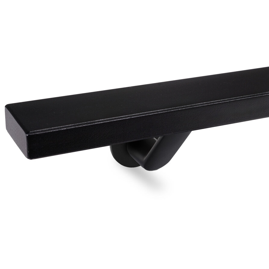 Zwarte trapleuning (gecoat) op maat - rechthoekig (50x20 mm) - incl. leuninghouders TYPE 7 LUXE - coating zwart RAL 9005