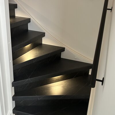 Een moderne zwarte trapleuning met trendy TYPE 3 LUXE leuningdragers. Deze zwarte leuning is geschikt voor praktisch alle moderne interieurstijlen, wordt op maat vervaardigd en geleverd incl. houders + bevestigingsmaterialen. Lees meer
