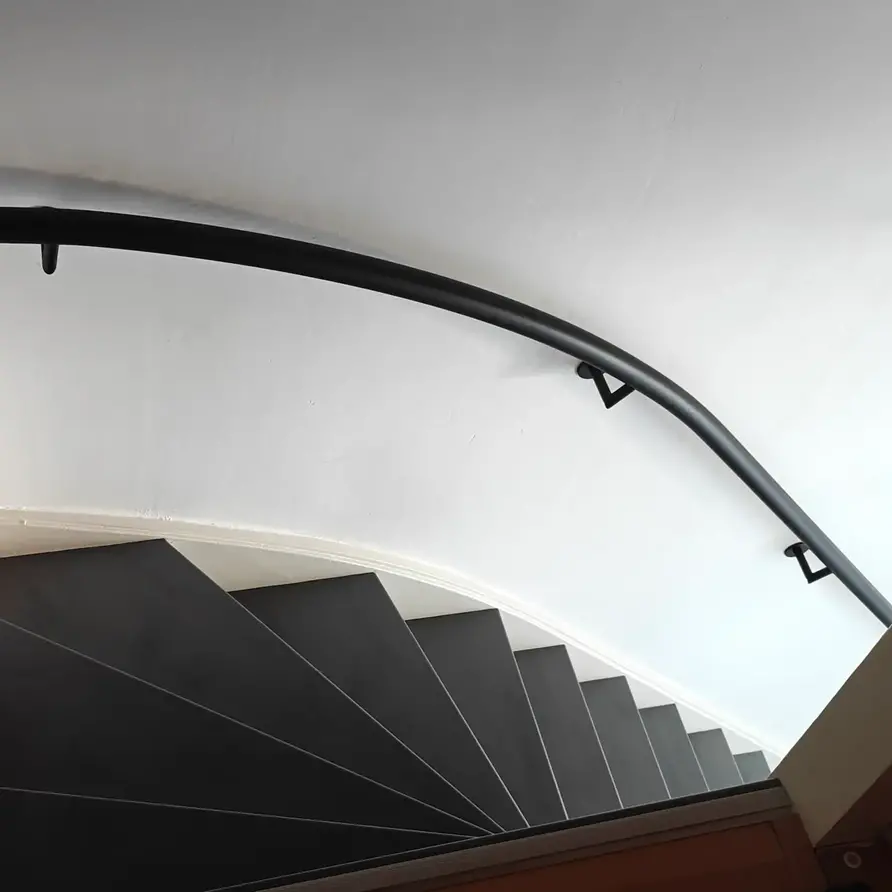 Zwarte trapleuning (gecoat) op maat - rond - incl. leuningdragers TYPE 3 LUXE - coating zwart RAL 9005