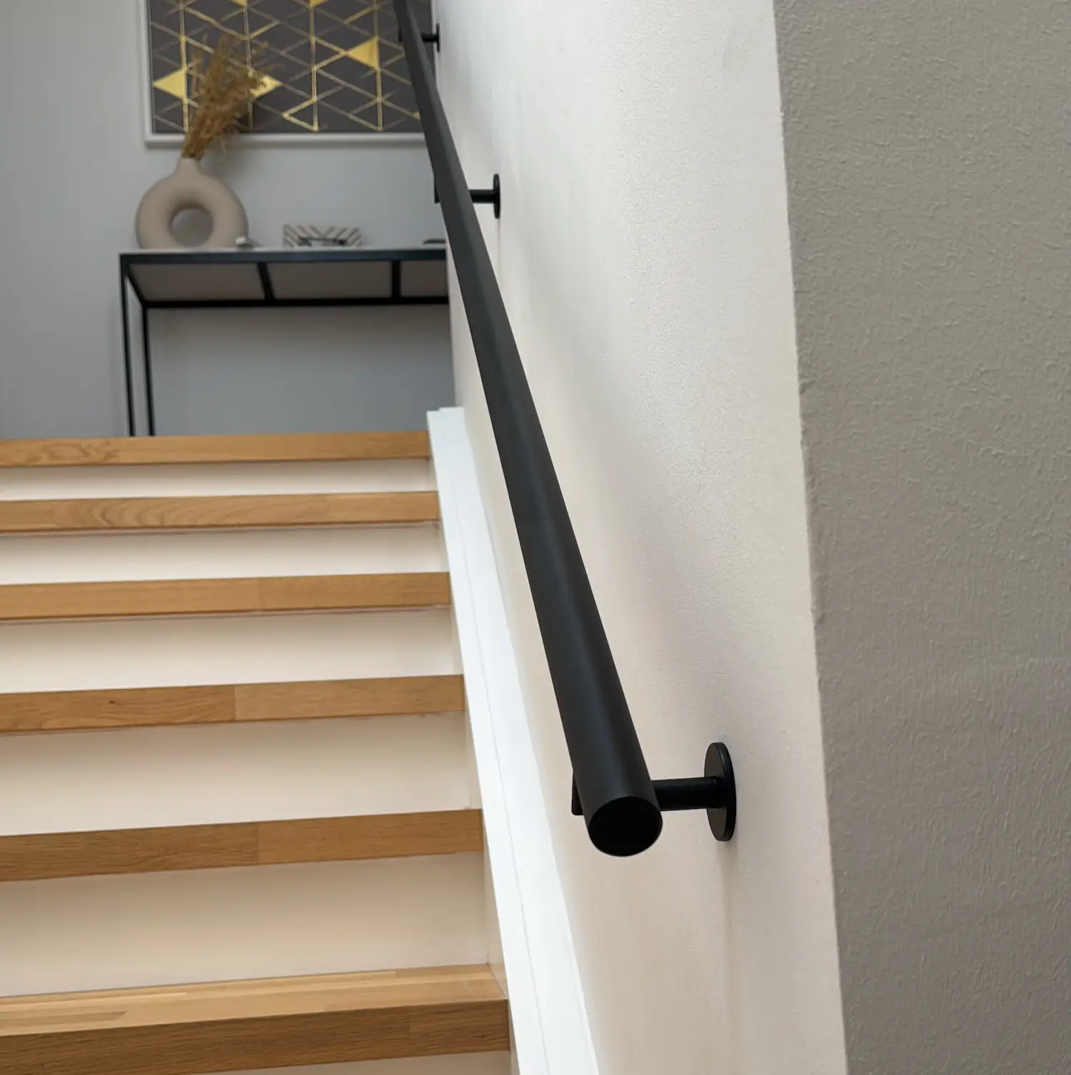 Zwarte trapleuning (gecoat) op maat - rond smal - incl. leuningdragers TYPE 3 LUXE - coating zwart RAL 9005
