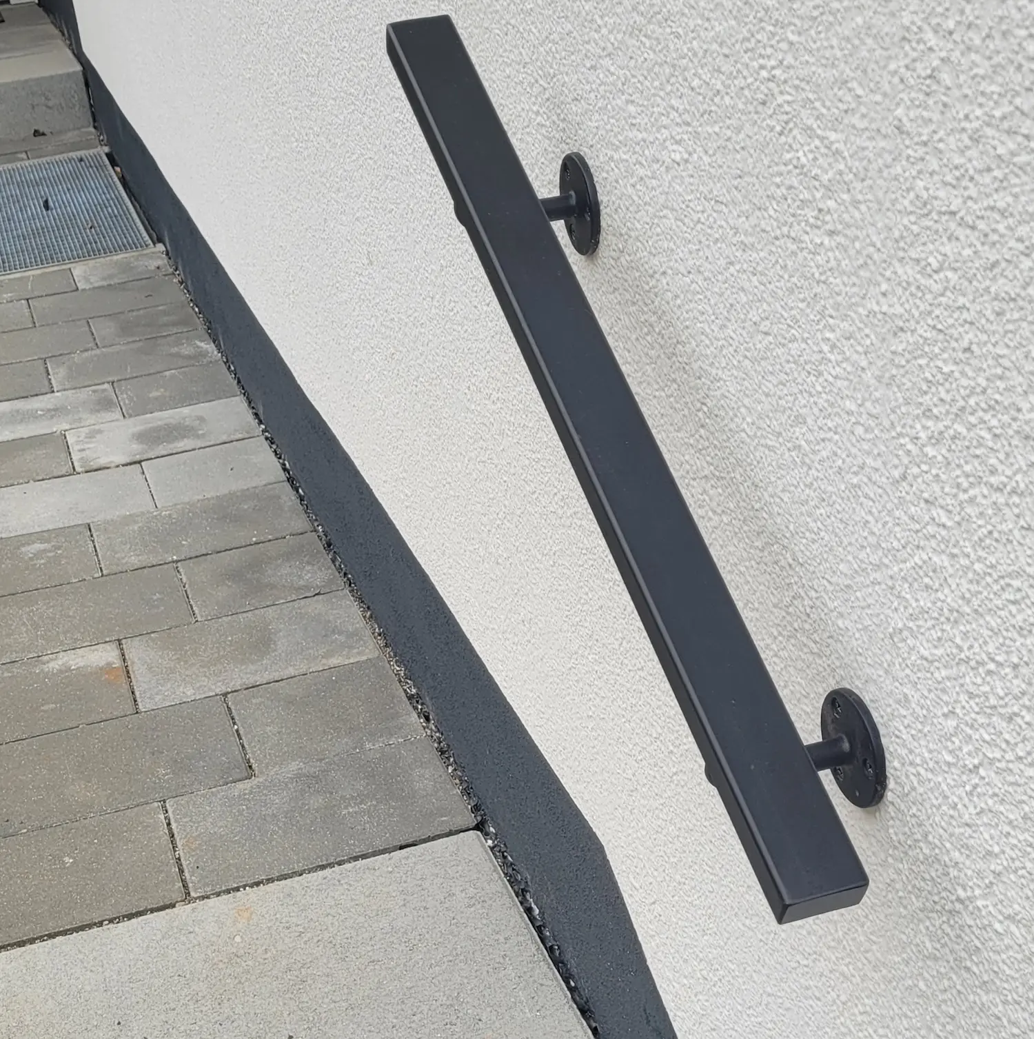 Een toegankelijke zwarte trapleuning voor buiten met klassieke type 1 leuningdragers. Deze rechthoekige leuning past in vrijwel iedere moderne tuininrichting en wordt - in een lengte op maat - compleet incl. dragers + bevestigingsmaterialen geleverd. Lees meer